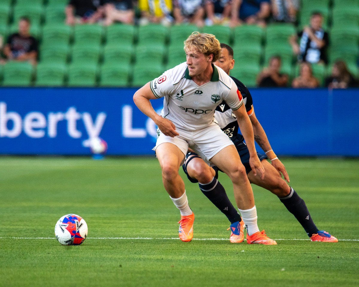 Main image: Alex Rufer in possession for the Wellington Phoenix in the round 10 Isuzu UTE A-League match against Melbourne Victory at AAMI Park. Photo: Jordan Martin/Jordan M Sport.
