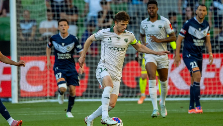 Main image: Alex Rufer in possession for the Wellington Phoenix in the round 10 Isuzu UTE A-League match against Melbourne Victory at AAMI Park. Photo: Jordan Martin/Jordan M Sport.