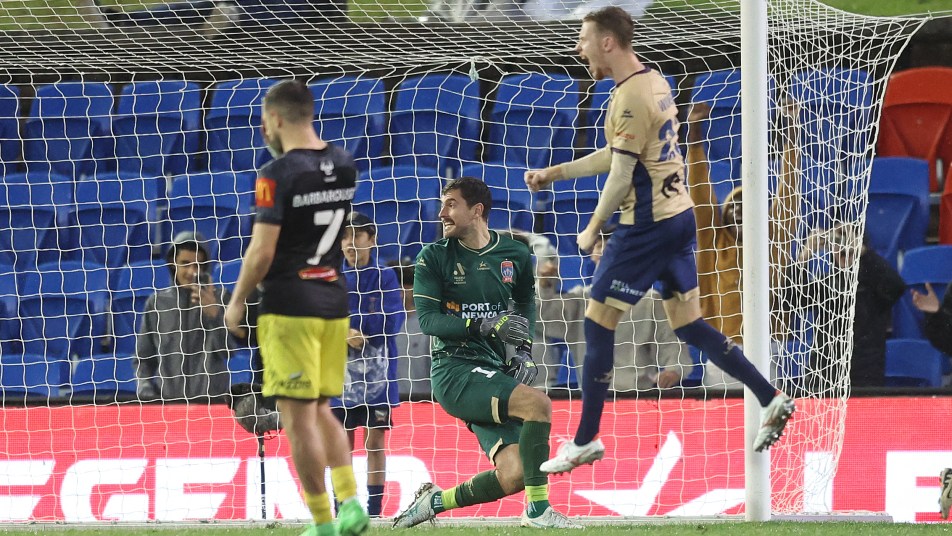 Otherwise Newcastle were camped in their half for most of the second 45. Scott made another acrobatic save on the hour mark to keep out a header from Barbarouses after Jets defender Phillip Cancar produced a crucial tackle to deny van Hattum in the penalty area.